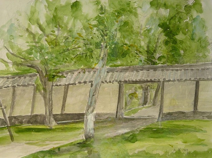 1989年に当時まだ大阪にいたのですが、奈良にぶらりとスケッチに行きました。 奈良公園内の興福寺の塀を描いてみました。