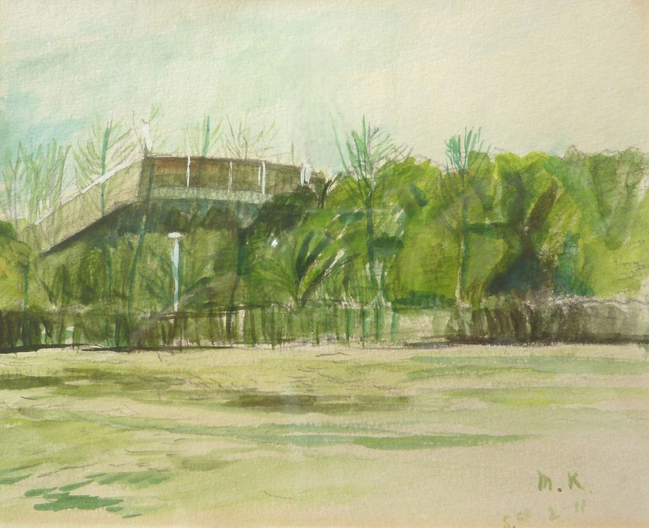 後日、再び長居公園を訪れ、異なるアングルで描いてみました。
