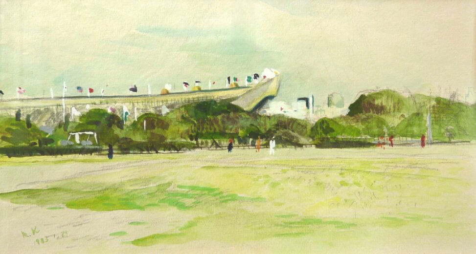 後日、再び長居公園を訪れ、異なるアングルで描いてみました。