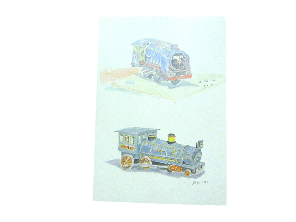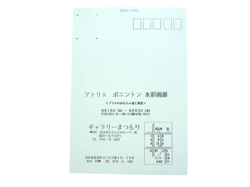 個展に併せてブリキのおもちゃをモチーフにしたポストカードシリーズを制作。難波での個展に来訪された女性デザイナーの作品に触発されました。