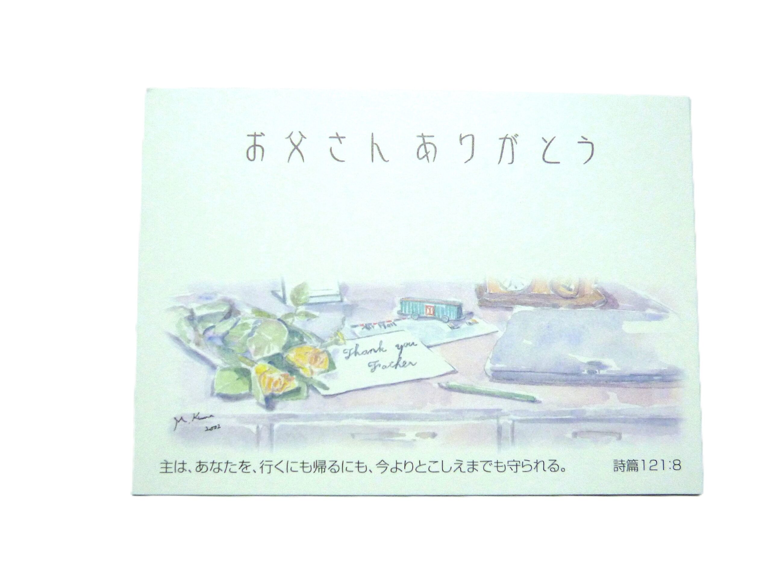 この「父の日」カードはキリスト教出版社のいのちのことば社からの依頼で描かせていただいたものです。聖書の詩編の言葉があります。