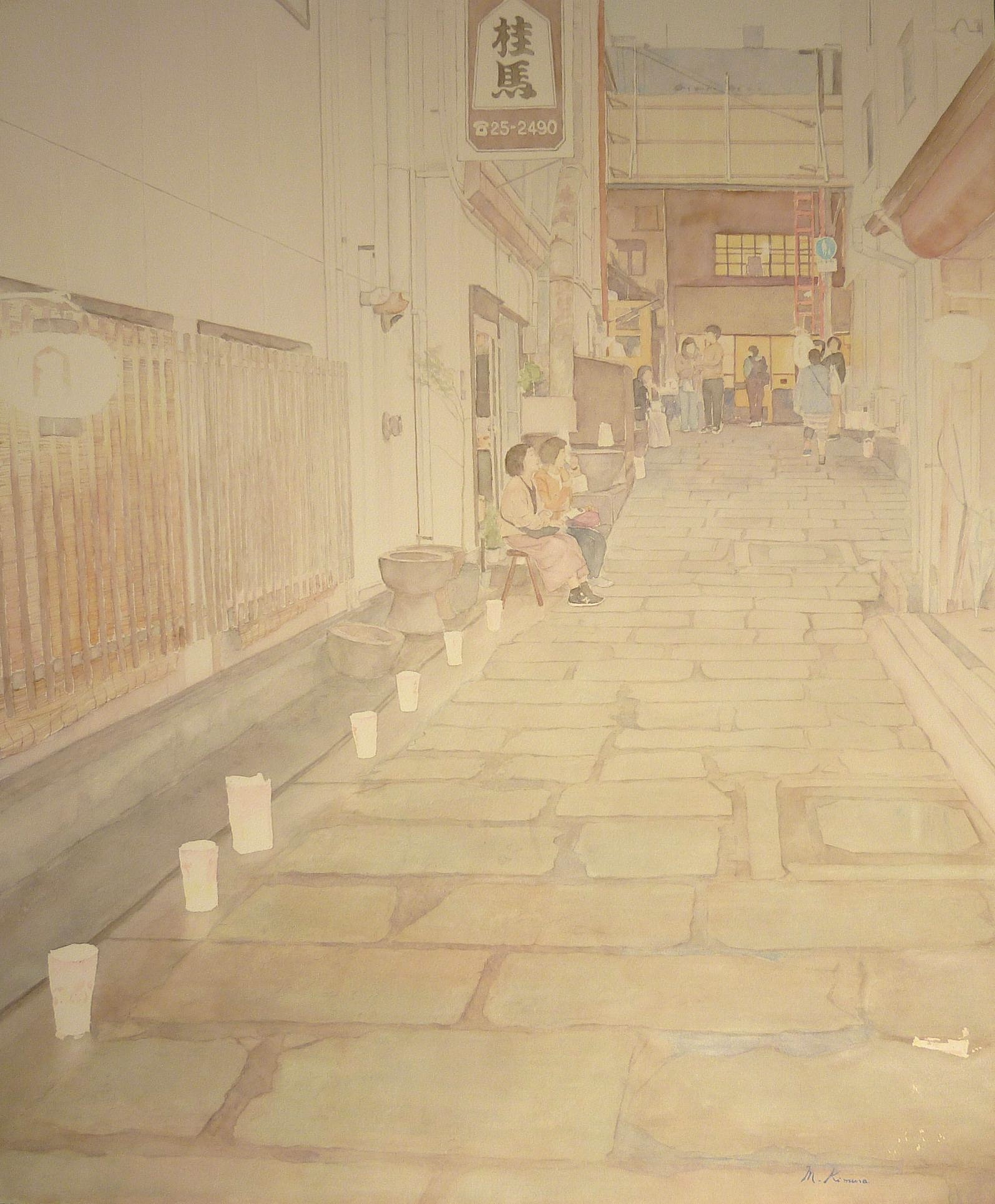 尾道の四季展に出品するため片道100kmのドライブとなりましたが、一泊して取材。取材中、アーケードの中の時計店を覗くと大きな油絵が見えたので、興味がてら若い店主の方にお話を聞きました。その際、石畳小路のイベントを教えてもらい20号の作品にしました。知り合いの社会保険労務士の先生に購入いただきました。