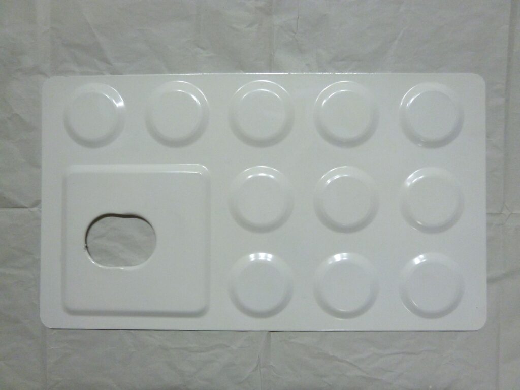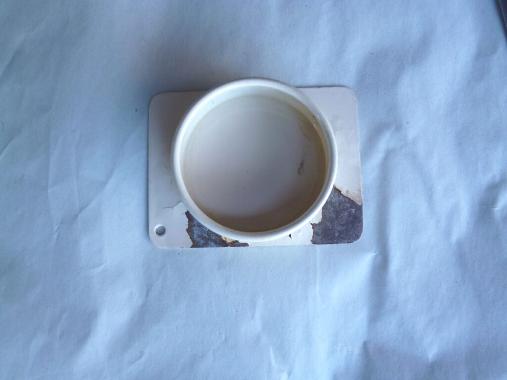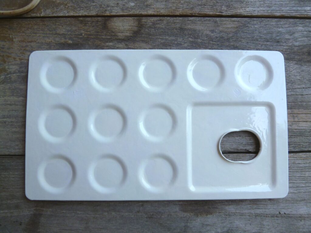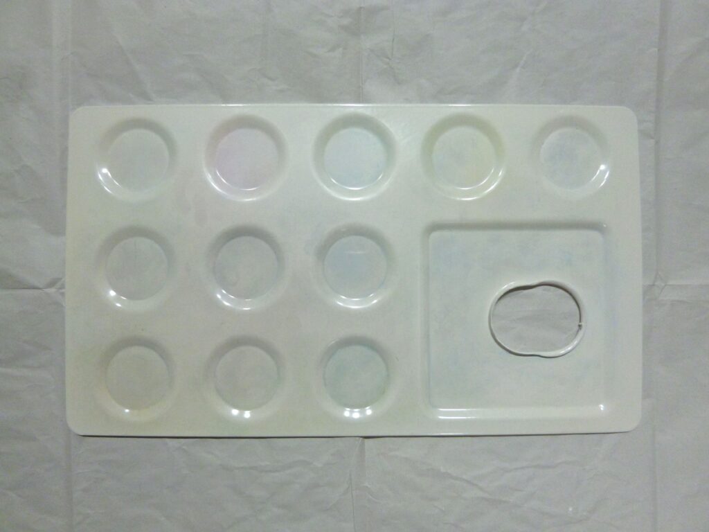 パレットも上の丸型筆洗のように、はじめハンブロールで塗装を試みましたが、アイボリーが強くとてもパレットとして使える雰囲気ではありませんでした。それで田宮のエナメル塗料で再塗装をしたところ、何とか色味だけはもとの雰囲気に近くなりました。使用レポートは後日アップいたします。