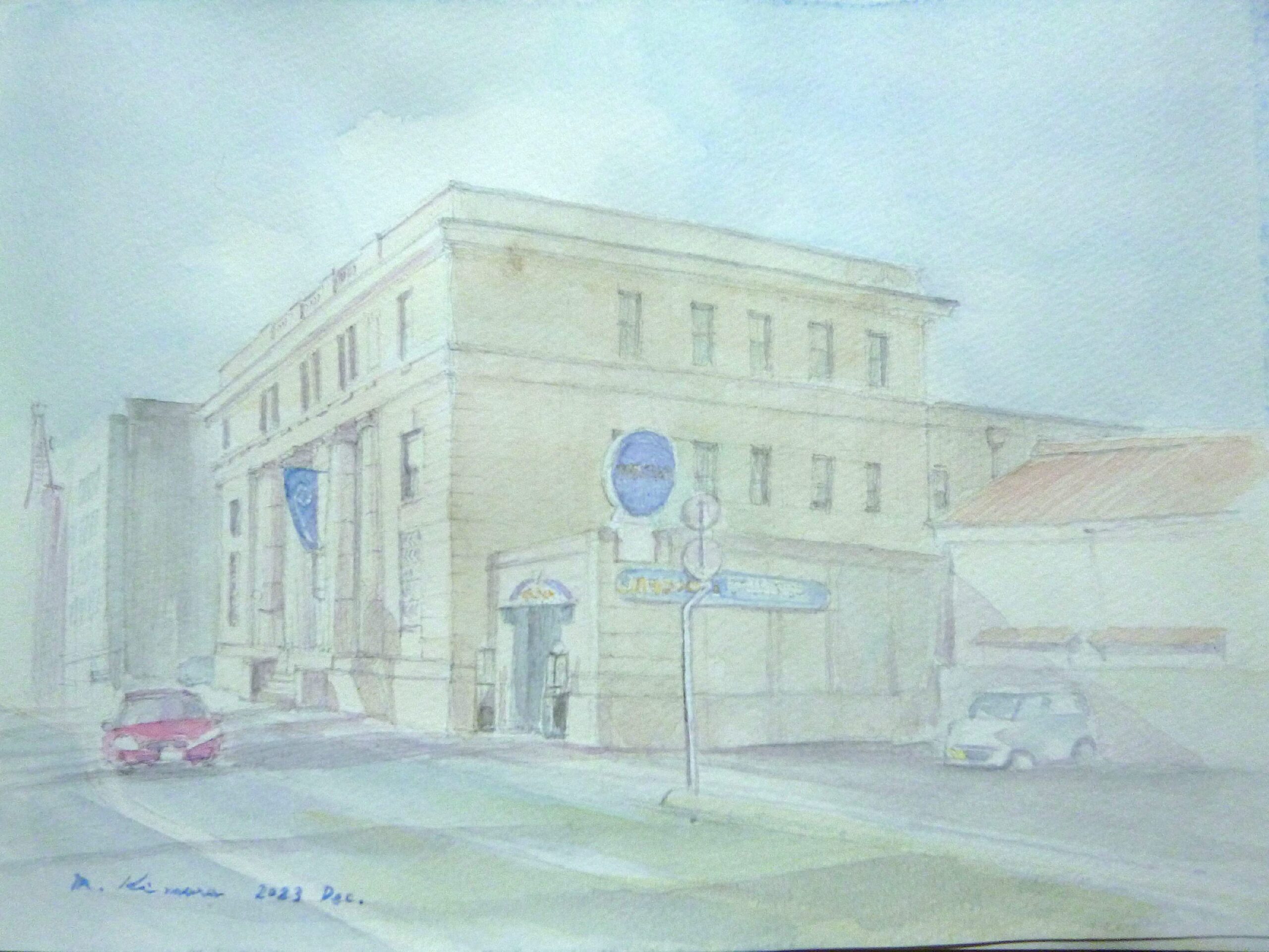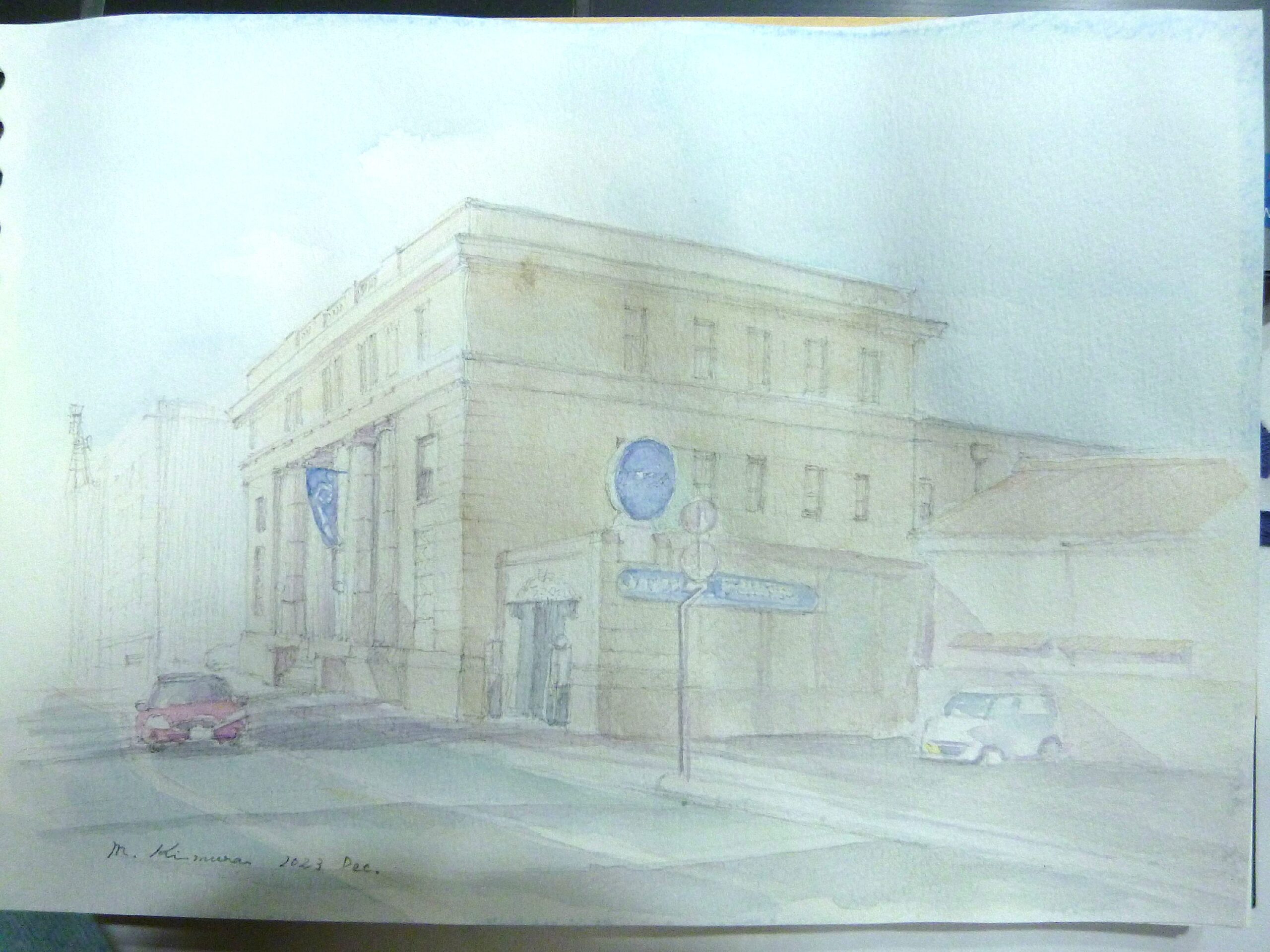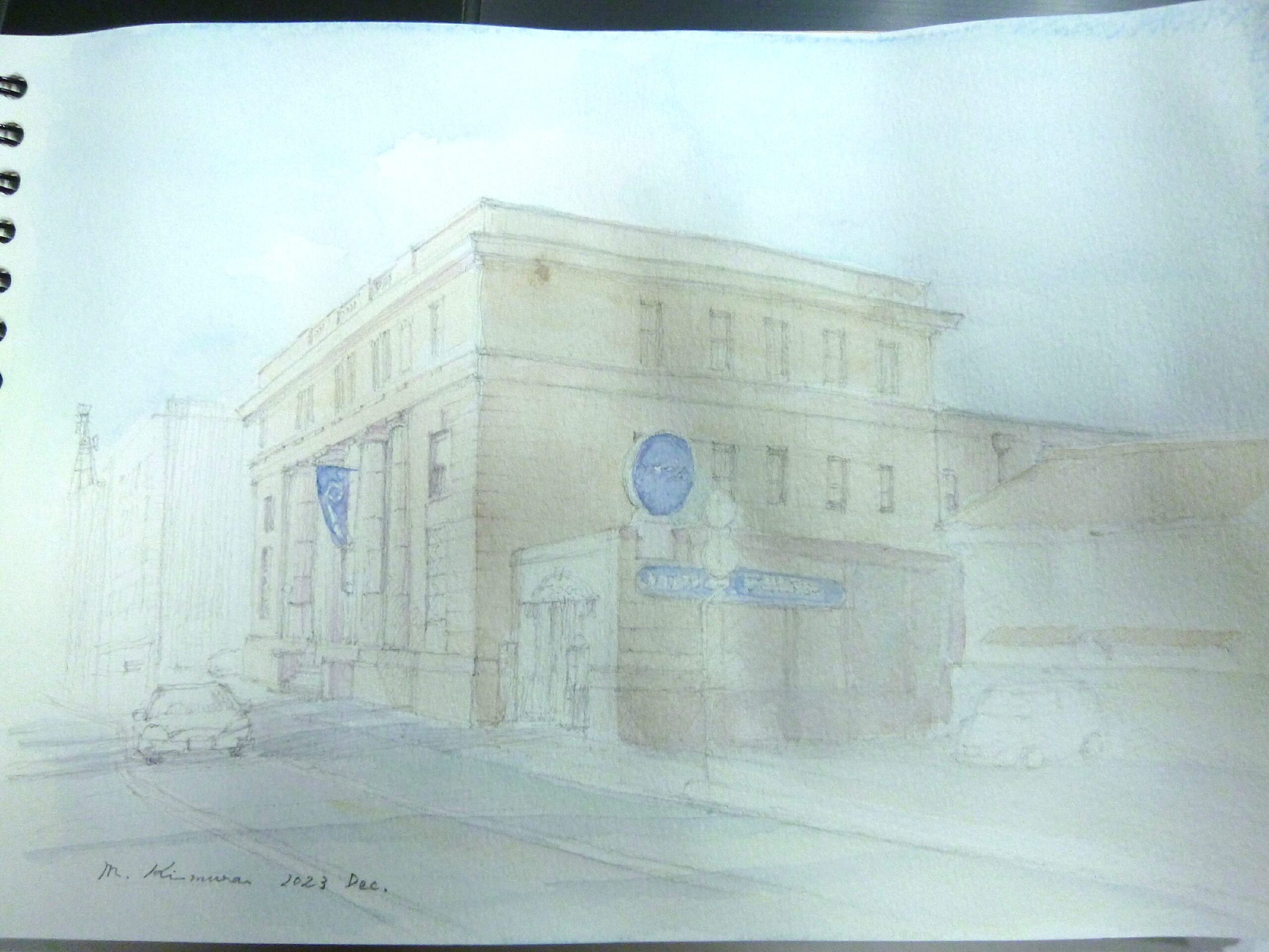 画面左のビルを描きこみます 右の民家の屋根を濃くしたりして完成へ