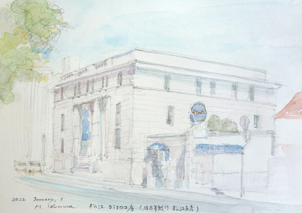 島根県の県庁所在地松江市にある旧日本銀行の松江支店です。現在はカラコロ工房という名称で親しまれています。下は一番最初のスケッチ。島根県に洋館はそう多くはありませんが、この建物はその代表格だと思います。