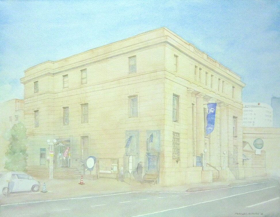 仕事の関係上、松江に行くことは結構ありましたが、その過程でこの洋館(旧日銀松江支店)がとても気になっていました。3年前の正月に取材し、一点透視図法(F6)と二点透視図法(F10)の2作品に仕上げました。