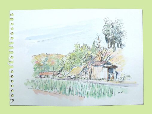 早春の平城京跡スケッチ